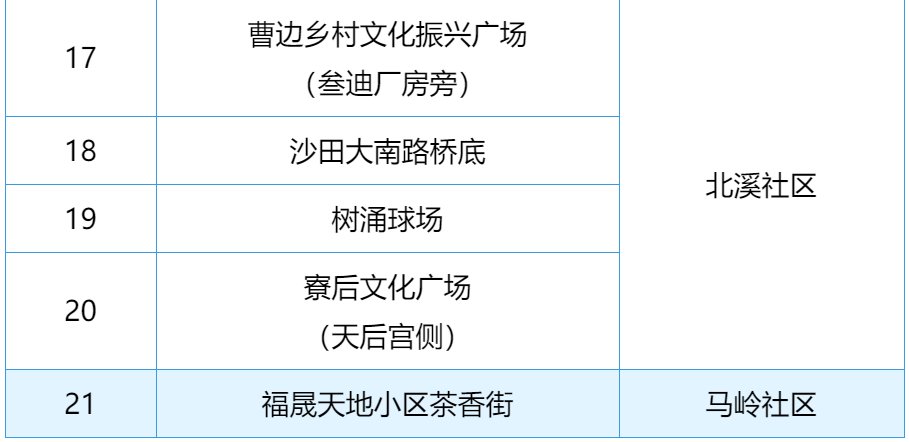 全街道设置21个固定核酸采样点,广大群众可就近免费检测,采样点具体安排如下: