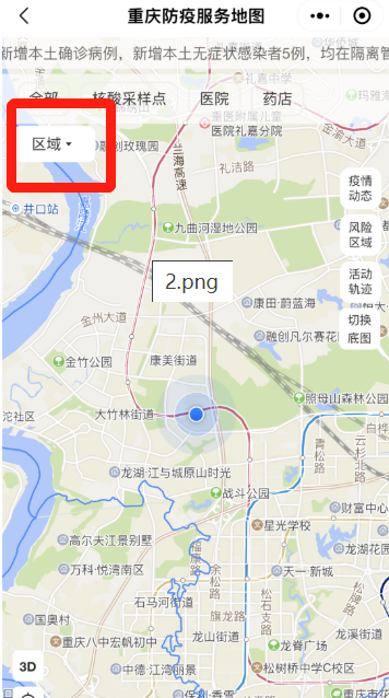 “重庆健康出行一码通”中的“防疫地图”可以查询核酸采样点。