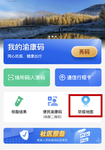 (一)打开微信小程序“渝康码”首页,点击“防疫地图”。