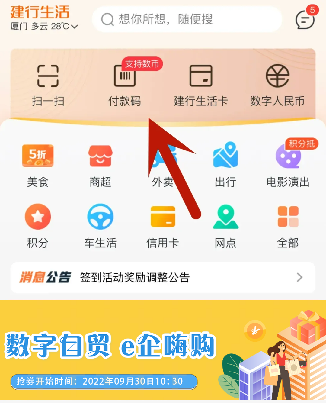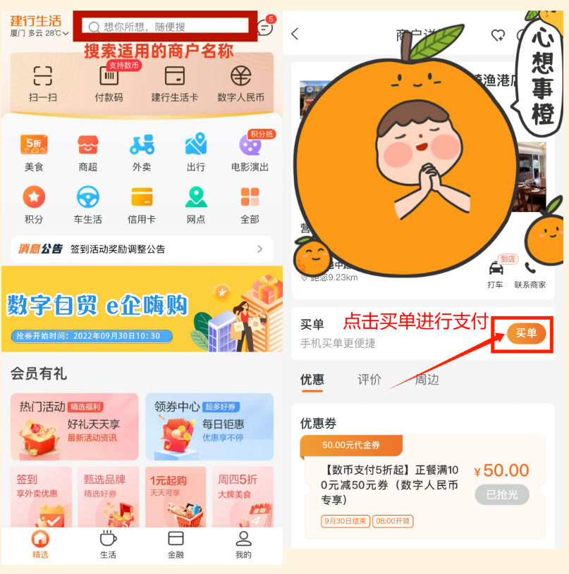 厦门自贸委数字人民币消费券使用指南(第一重建行APP)