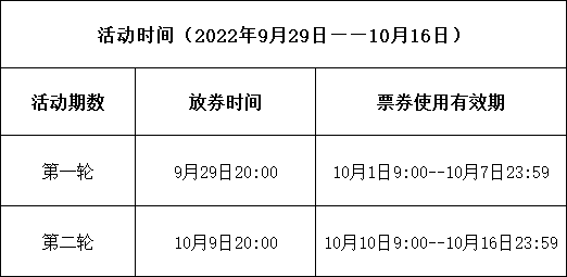 (1)消费券面额:餐饮电子消费券设有满600元减200元优惠券1250张,满300元减100元优惠券1600张,满150元减50元优惠券1800张;零售百货家电电子消费券设有满600元减200元2050张,满300元减100元4100张,满150元减50元8200张。消费者每轮可领取餐饮、零售百货家电消费券各一张。