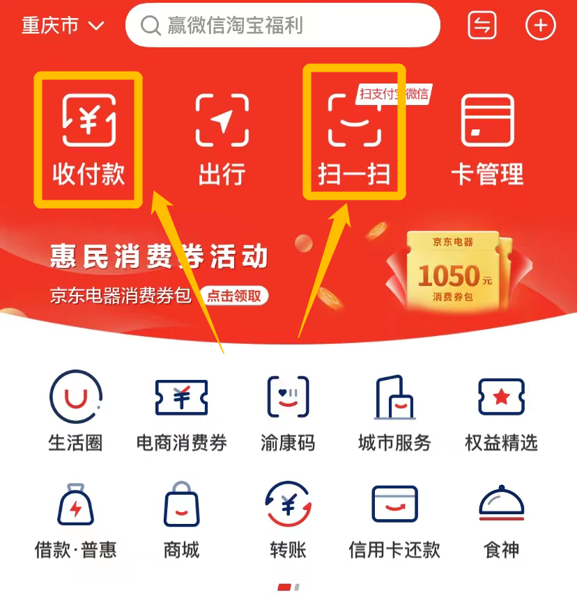 线下消费直接用“云闪付扫描商家收款码”或者“出示云闪付付款码”,达到满减金额即可自动抵扣消费券减免金额。