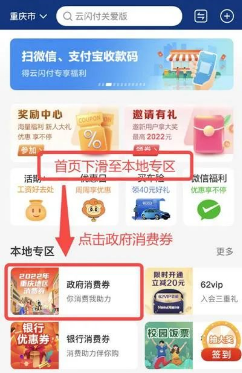 抢券期间,用户登录云闪付APP—“本地专区”—“政府消费券”—“九龙坡消费券”活动专区页面,即可在4种消费券中任选1张消费券,支付0.1元即可购买和核销。
