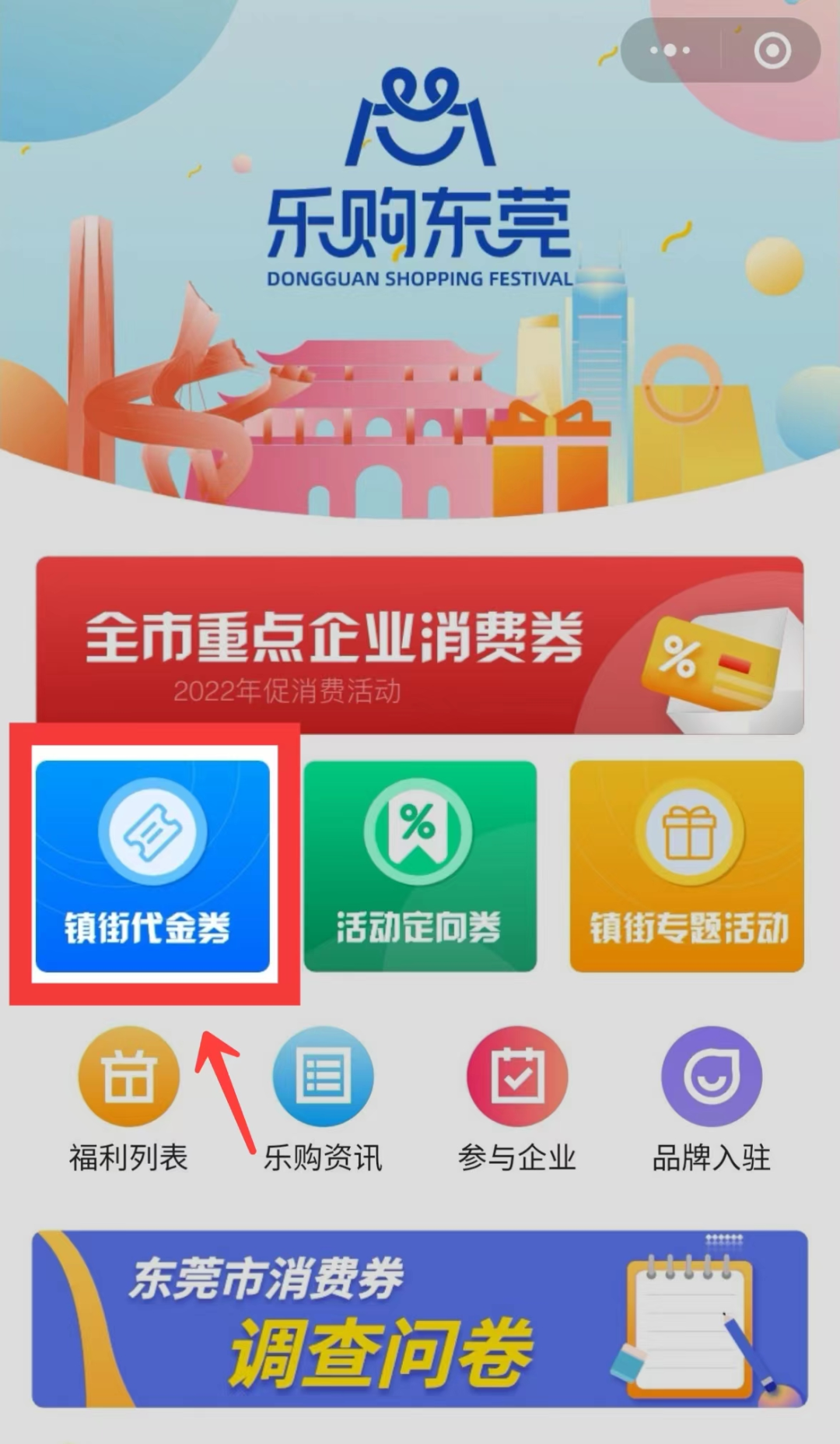 领券方式:打开“乐购东莞”小程序,点击“镇街代金券”,进入领券页面