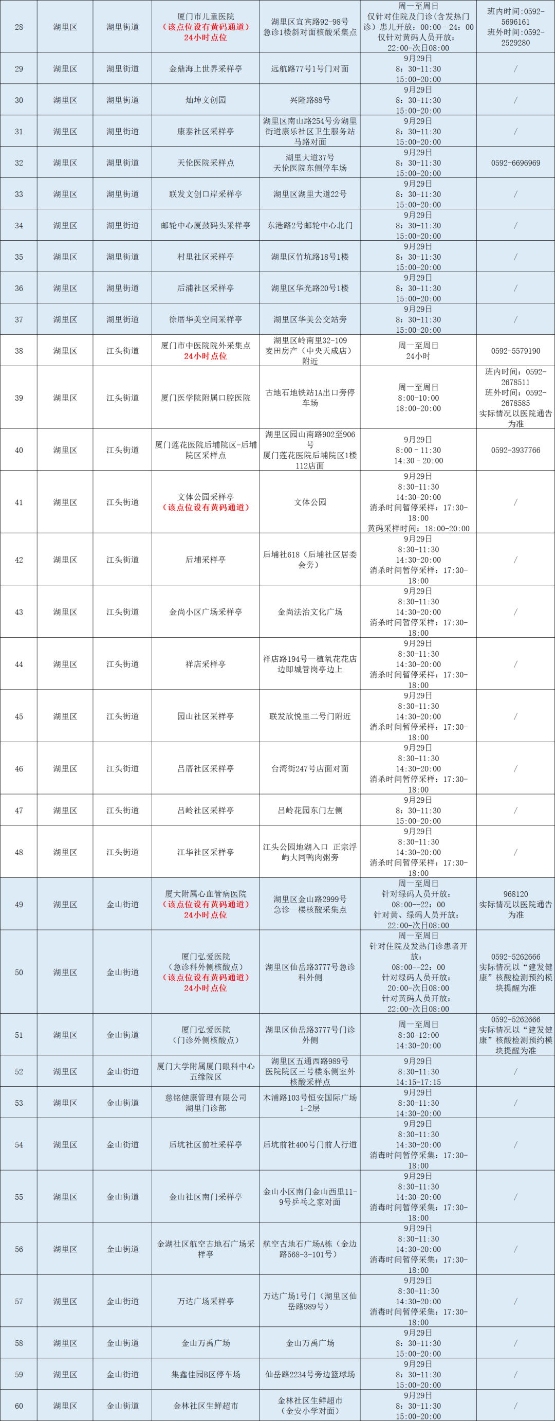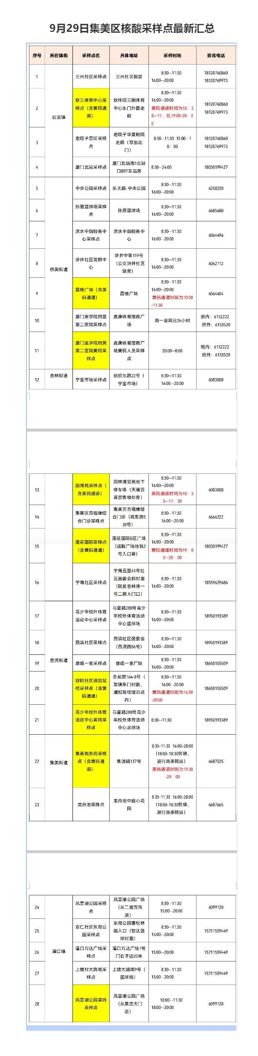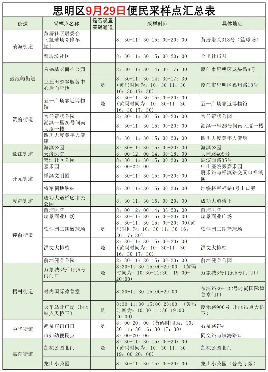9月29日厦门免费核酸采样点汇总