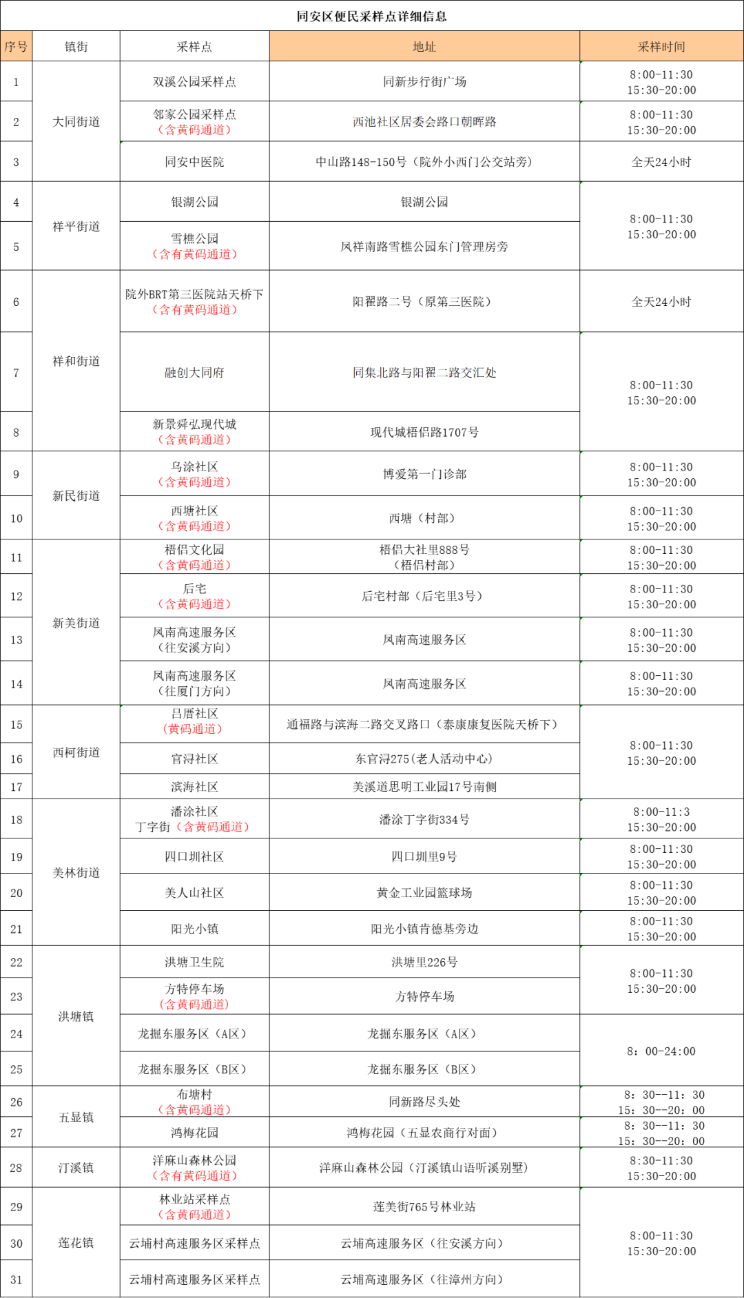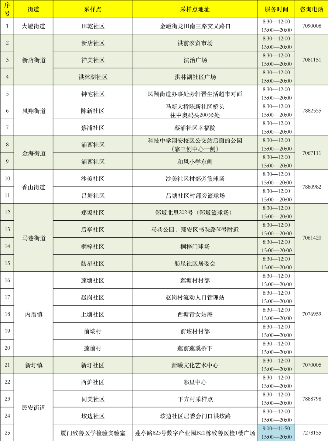 翔安区便民核酸采样点