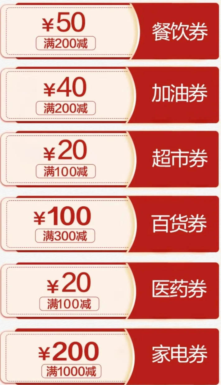 三、活动金额:共5000万电子消费券,具体消费券面额: