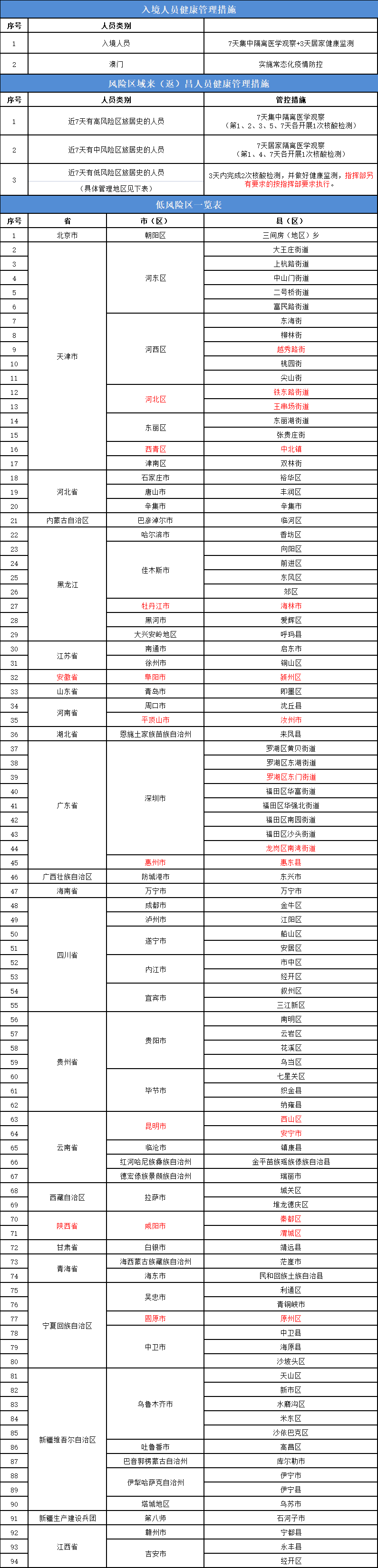 来自以下地区的来(返)昌人员严格按照《新型冠状病毒肺炎防控方案(第九版)》要求落实管控措施,指挥部另有要求的按指挥部要求执行。