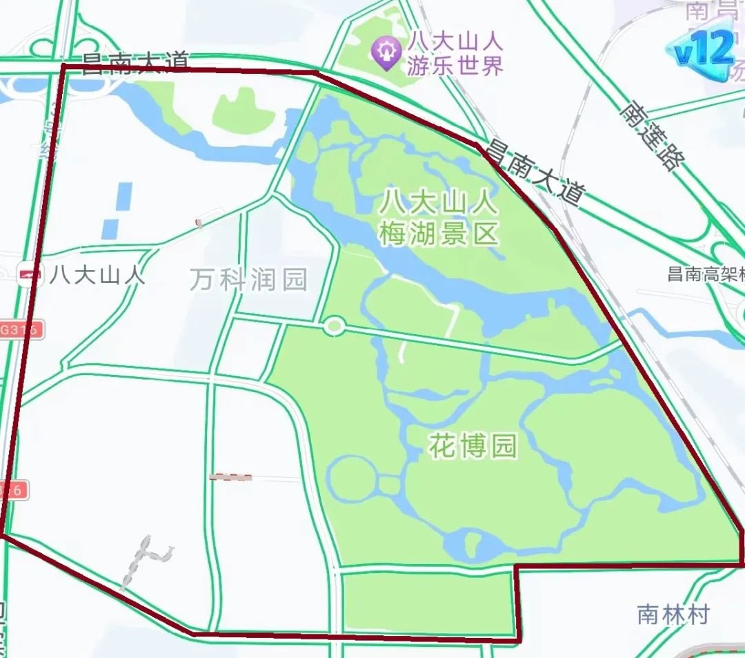 昌南大道(不含)以南、青云谱南路(不含)以西、岱山东路(不含)以北、迎宾北大道(不含)以东合围的区域。