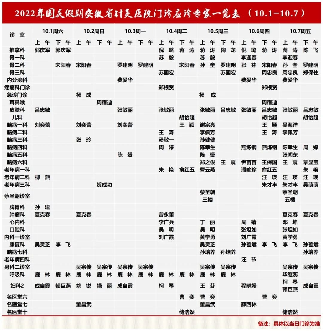 2022合肥国庆节安徽省针灸医院门诊应诊安排表