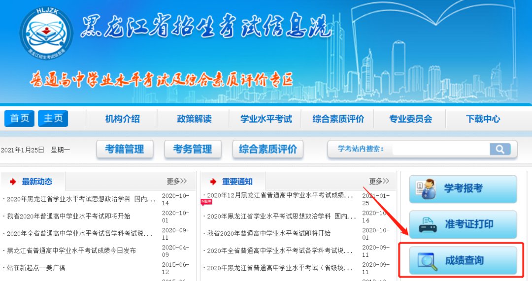 2022年黑龙江省招生考试信息港高中学考成绩查询系统