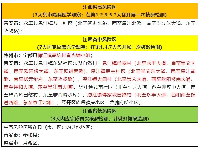 一、江西省省内流动人员健康管理措施清单(更新至2022年9月29日15时)