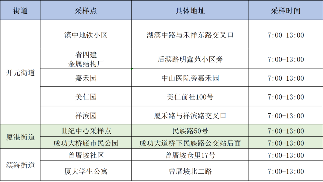 采样点位及时间仅供参考,具体以镇(街)、村(社区)通知为准