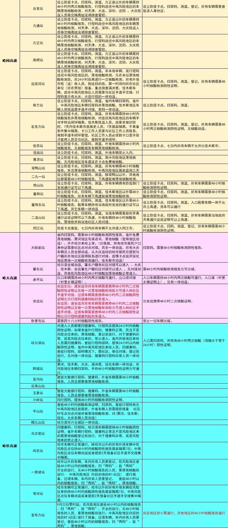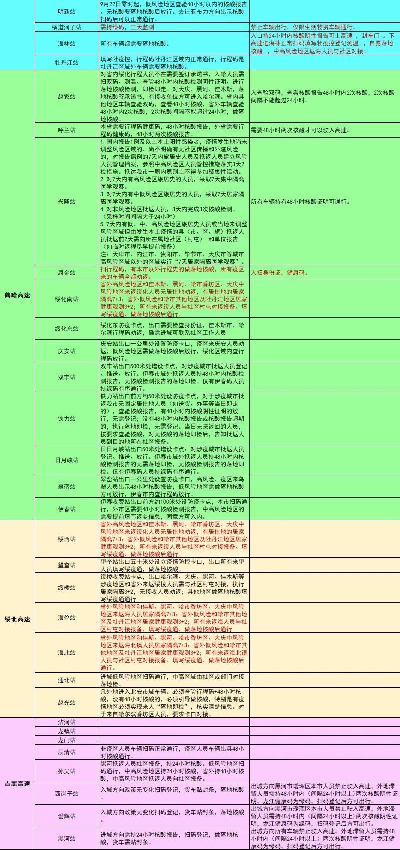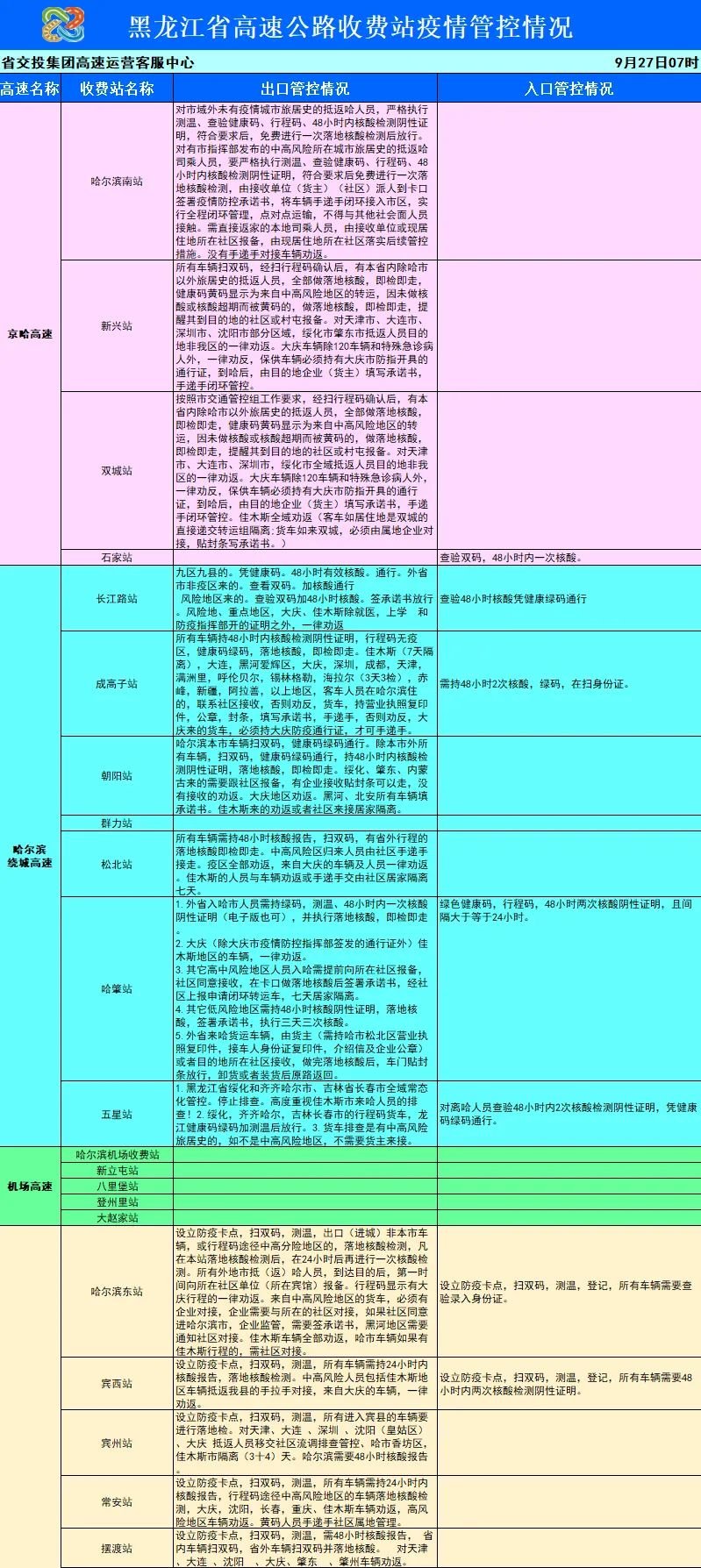 小编提醒:由于表格过长,文章篇幅有限,仅展示部分龙江高速收费站管控情况。