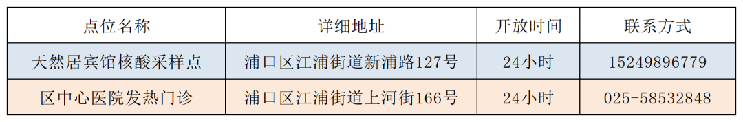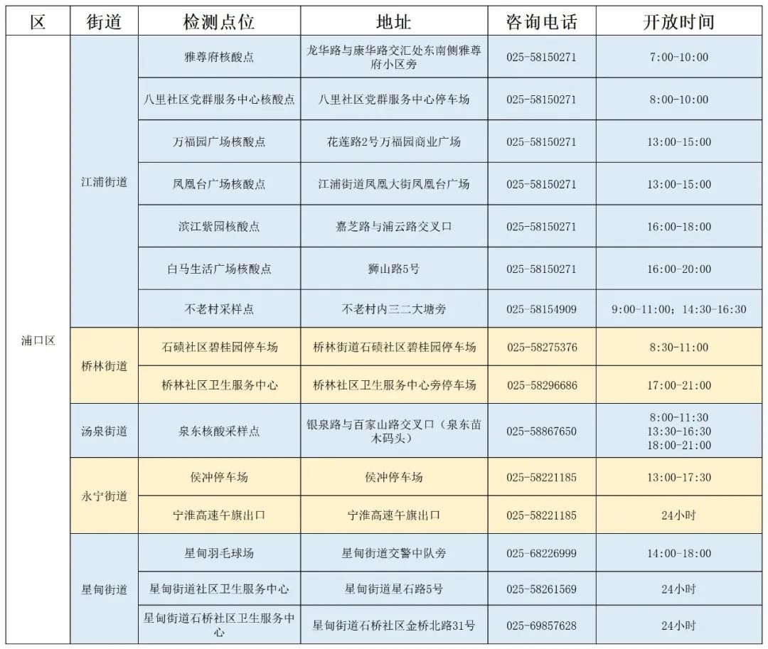 2022国庆期间南京浦口区核酸采样点及服务时间安排