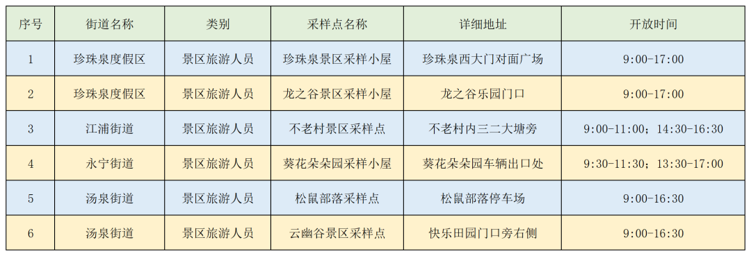 “应检尽检”重点人群核酸采样开放时间(注:被赋黄码的重点“应检尽检”人员,可凭短信提示信息,到重点人群集中检测点进行核酸检测。)
