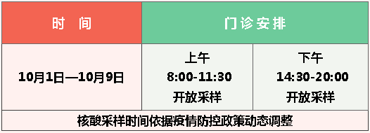 湖里妇幼2022年国庆假期门诊及核酸采样安排
