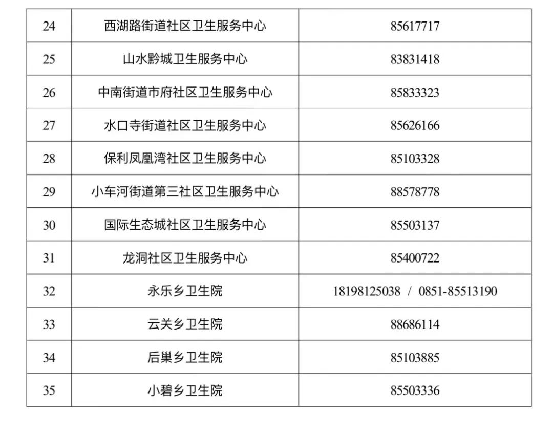南明区核酸采样点位和便民服务热线电话(9月30日)
