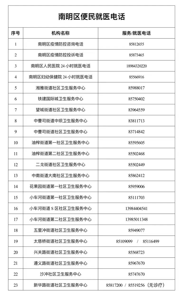 《南明区关于公布核酸采样点位和便民服务热线电话的通告》