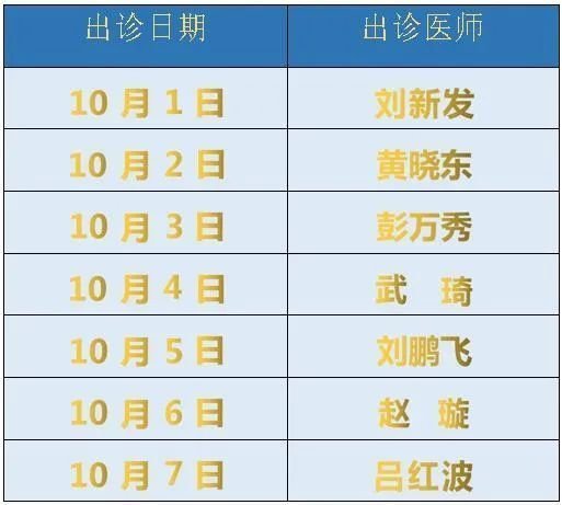 国庆长假期间我院急诊全天正常开诊,现将具体出诊医师信息安排通知如下: