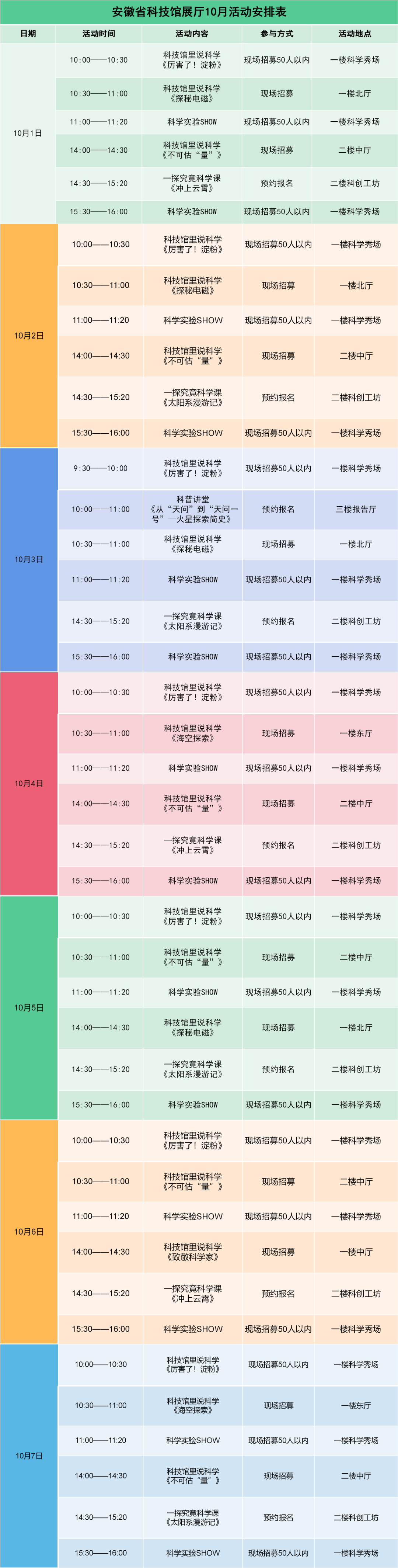 2022安徽科技馆国庆假期活动安排表 安徽创新馆国庆开放时间