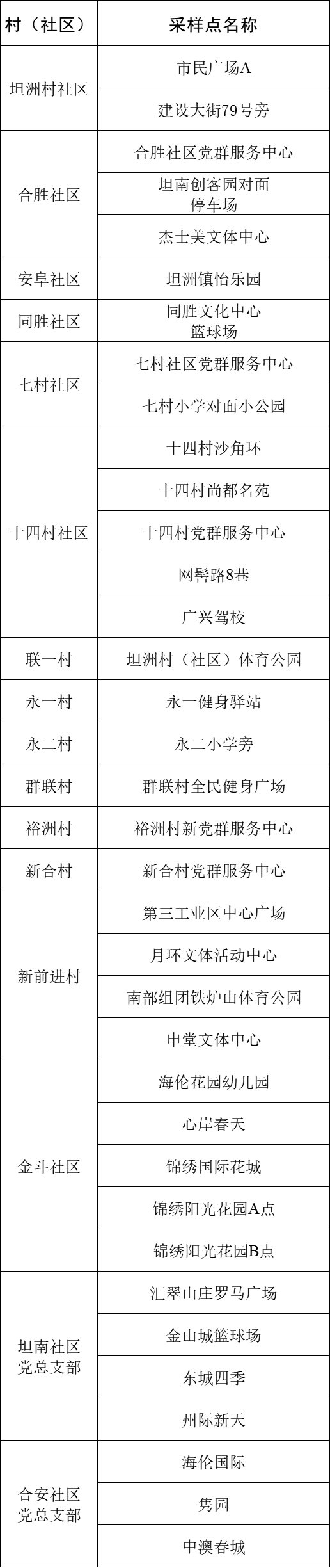 根据市统一部署安排,为做好新冠肺炎疫情防控工作,切实保障人民群众生命安全和身体健康,经镇新冠肺炎疫情防控指挥部研究决定,按照“应检尽检、不漏一户、不落一人”的原则,坦洲镇于2022年3月17日开展全员核酸检测。现将有关事项通告如下:
