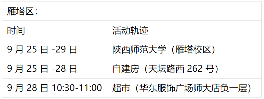 10月1日西安新增1例本土确诊病例和4例无症状者活动轨迹