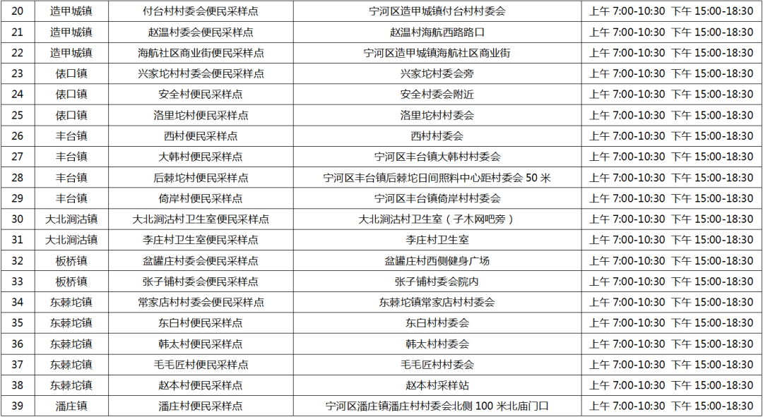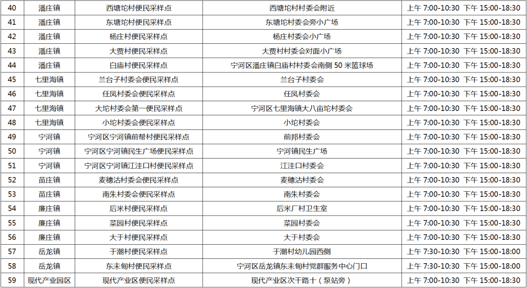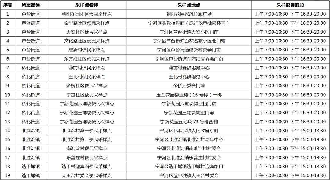 宁河区常态化采样点点位公示信息