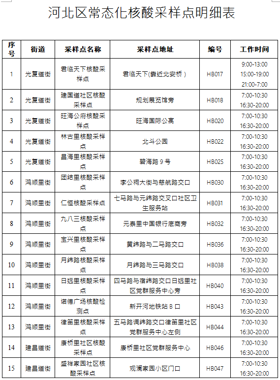 为及时监测发现新冠病毒隐匿传播风险,更好地维护广大人民群众生命安全和身体健康,巩固新冠肺炎疫情防控成果,河北区疫情防控指挥部研究决定,从10月4日起,河北区常态化核酸采样点恢复服务。