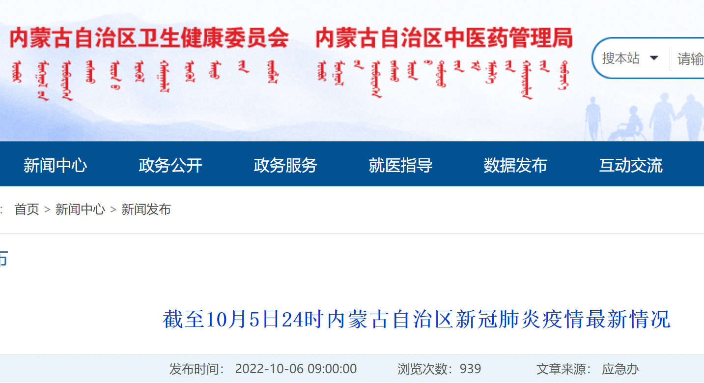 截至10月5日24时内蒙古自治区新冠肺炎疫情最新情况