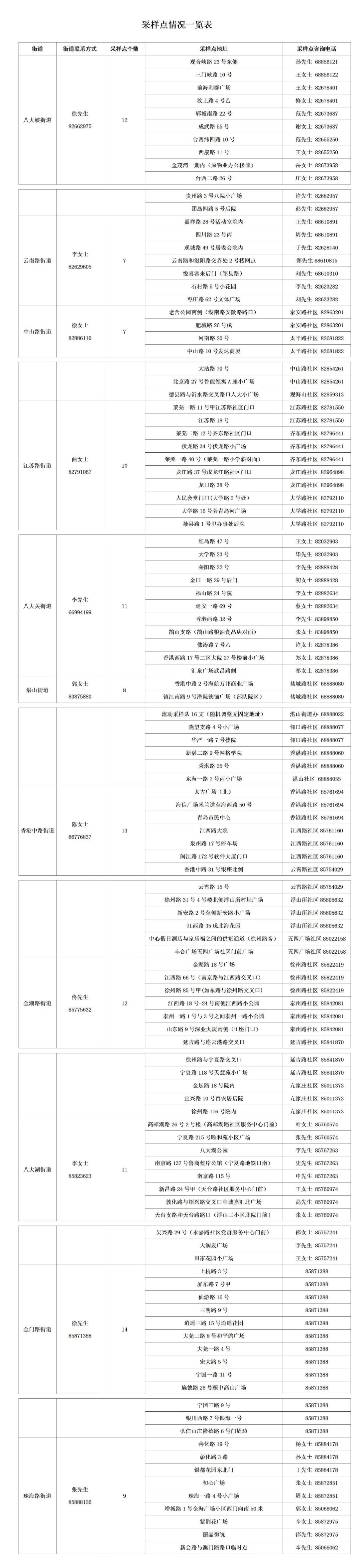 由各街道办事处统一安排采样点,具体信息详见采样点情况一览表(附后),或扫描“市南区核酸检测采样点地图小程序”(附后),对核酸检测采样点进行查询。
