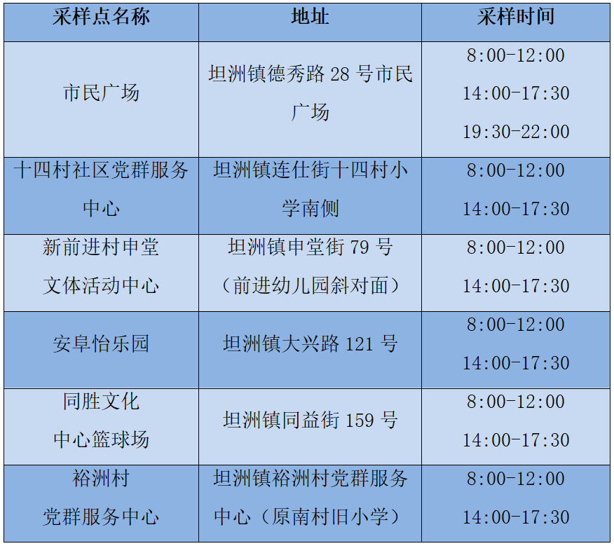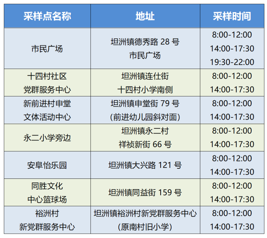 为进一步强化新冠疫情监测,落实“早发现、早报告、早隔离、早治疗”措施,根据市新冠疫情防控指挥办有关要求,坦洲镇对有需要的常规人群进行免费核酸检测。注意!4月4日起坦洲镇便民核酸采样点有调整,不要跑错啦!具体如下: