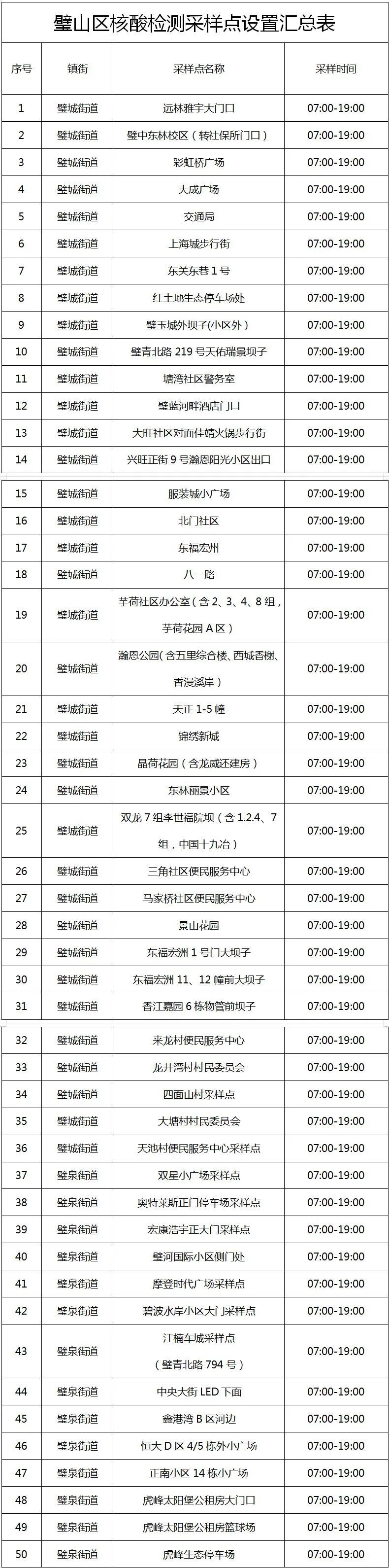 10月9日—11日重庆璧山区核酸检测采样点设置汇总表