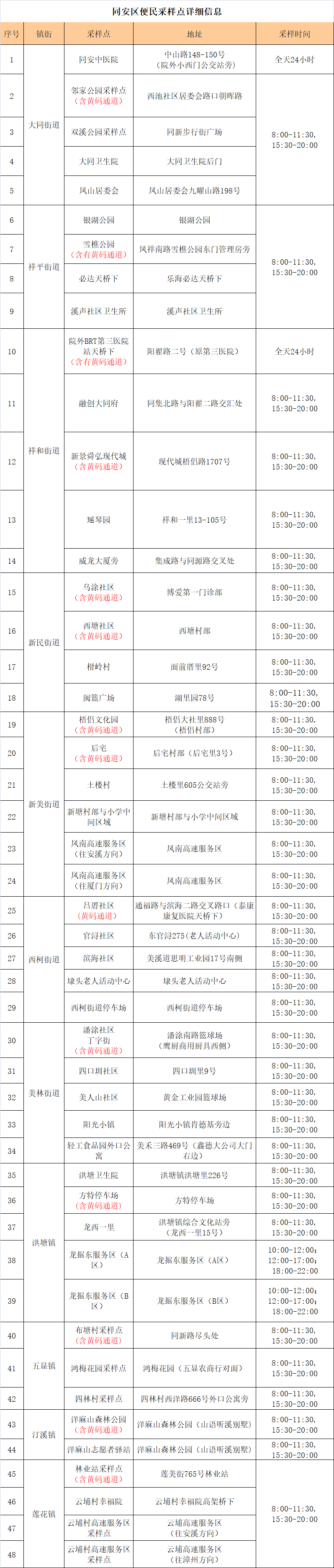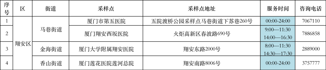 翔安区便民核酸采样点