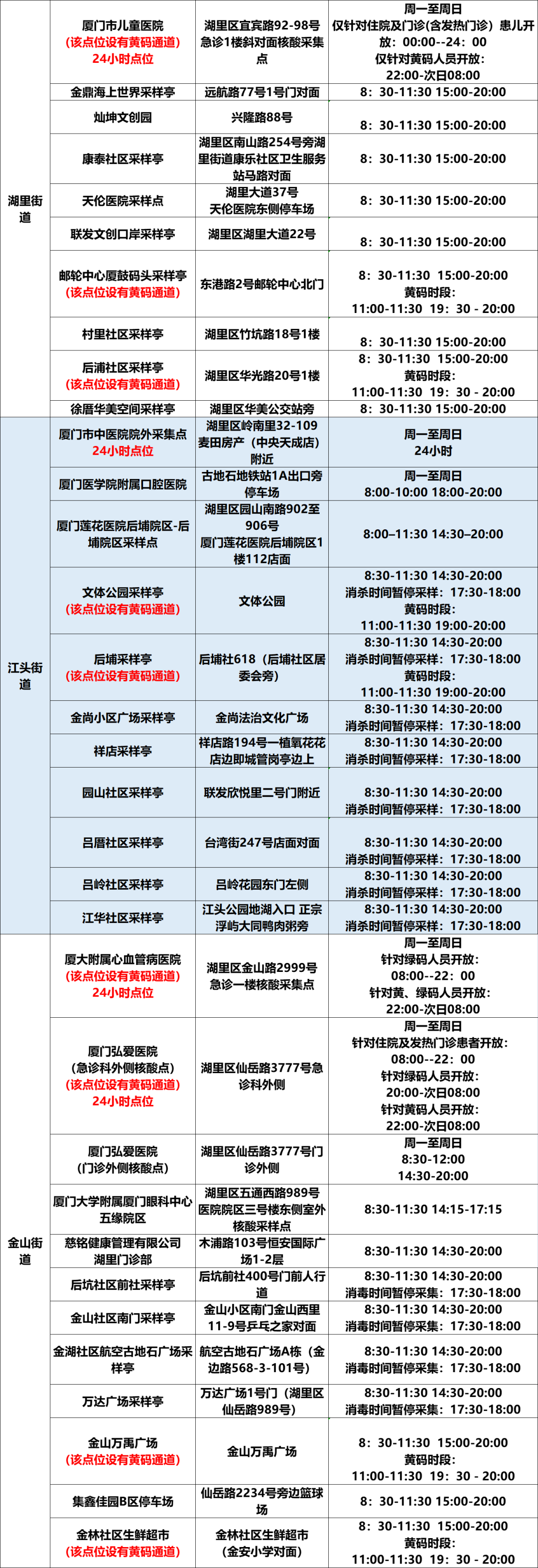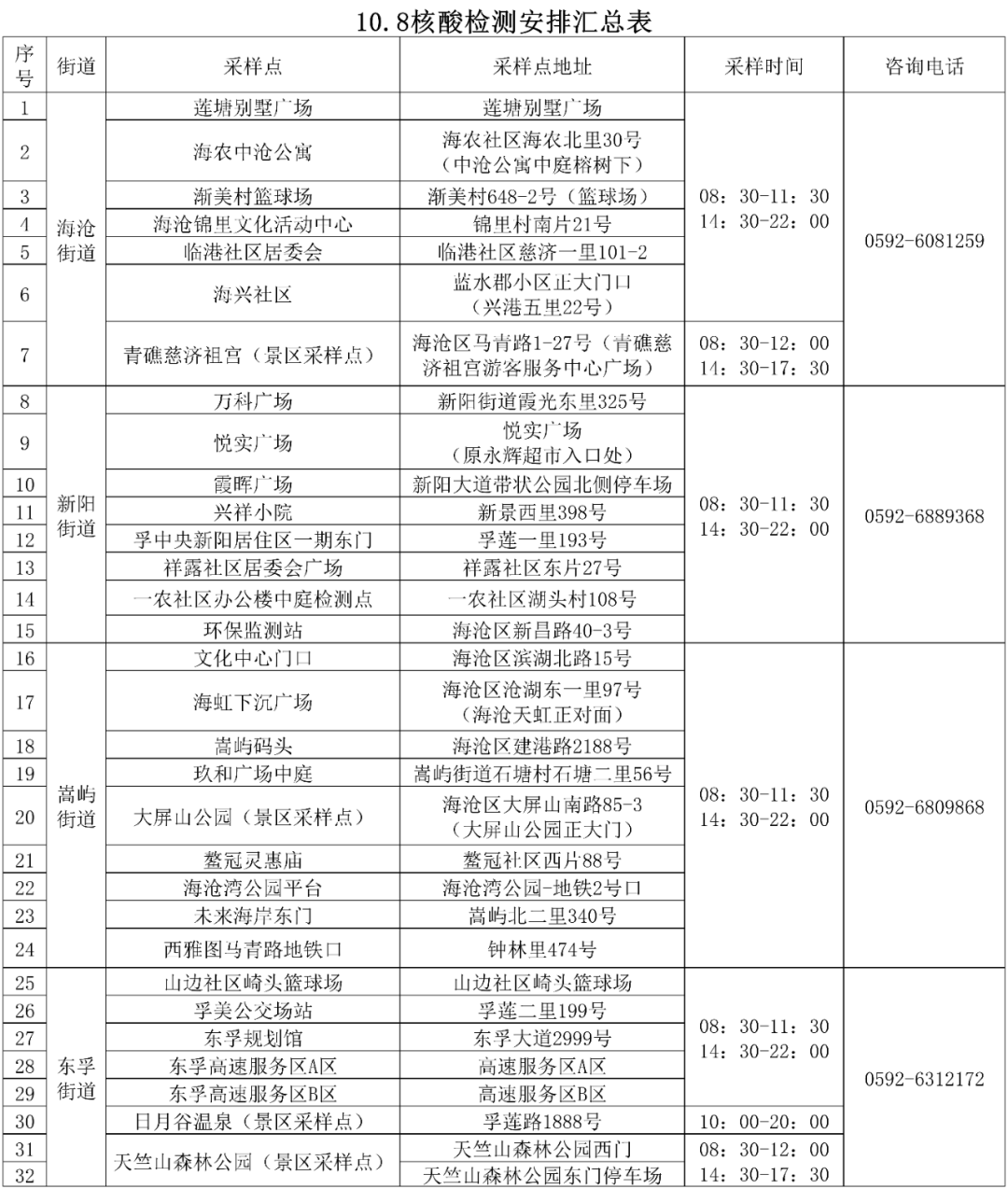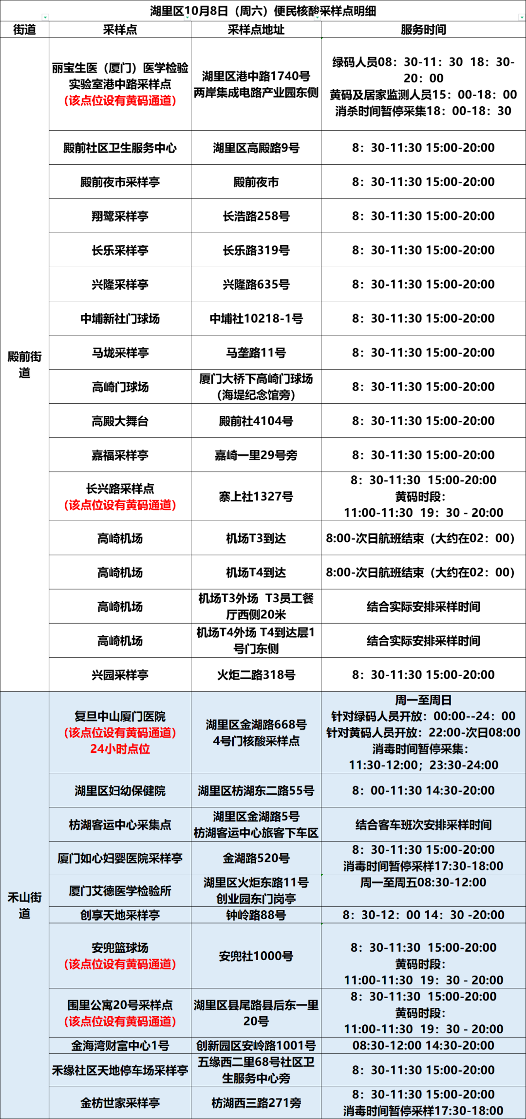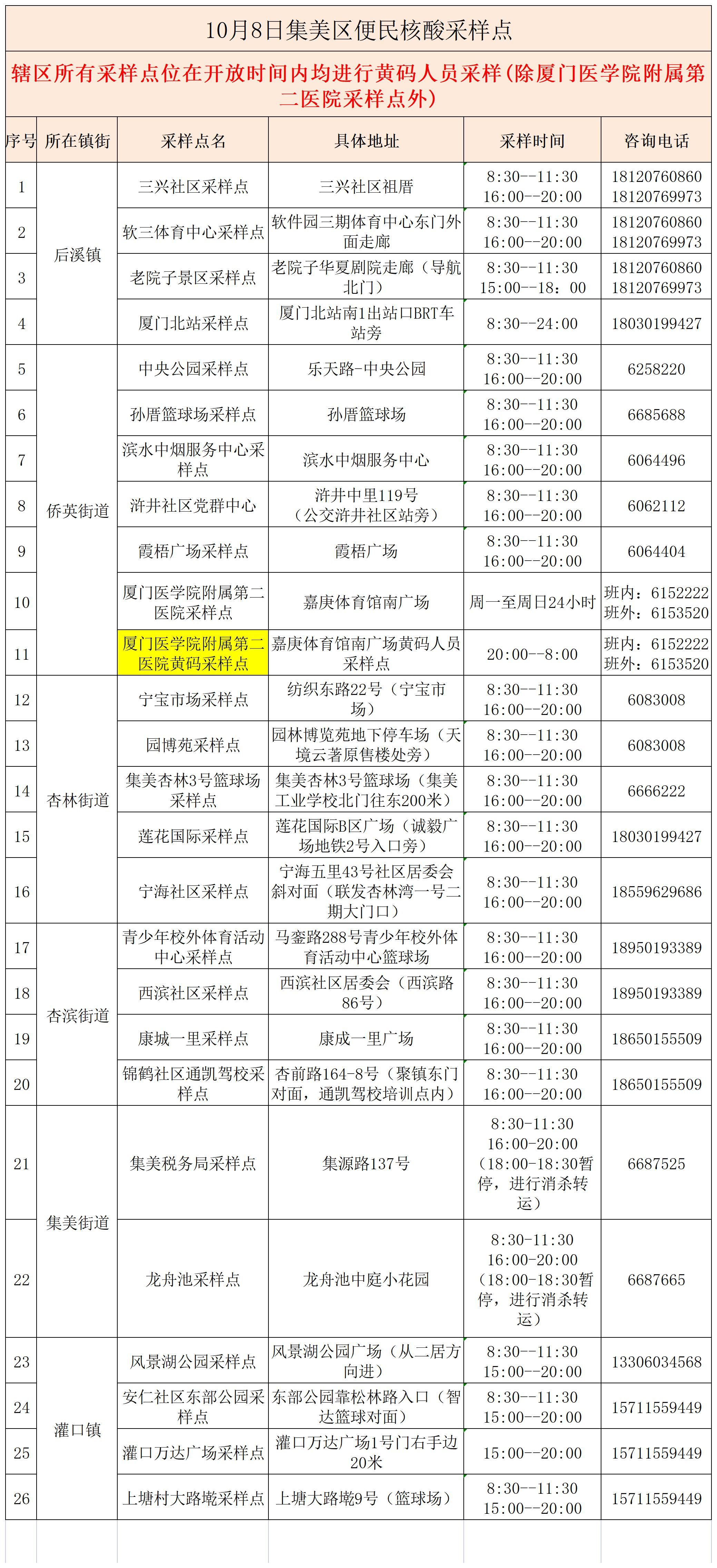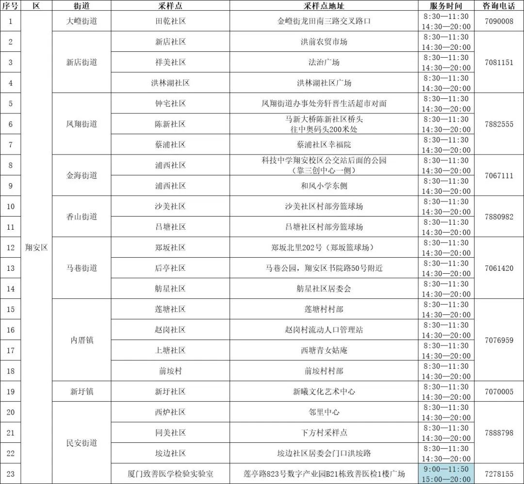 10月8日厦门免费核酸采样点汇总