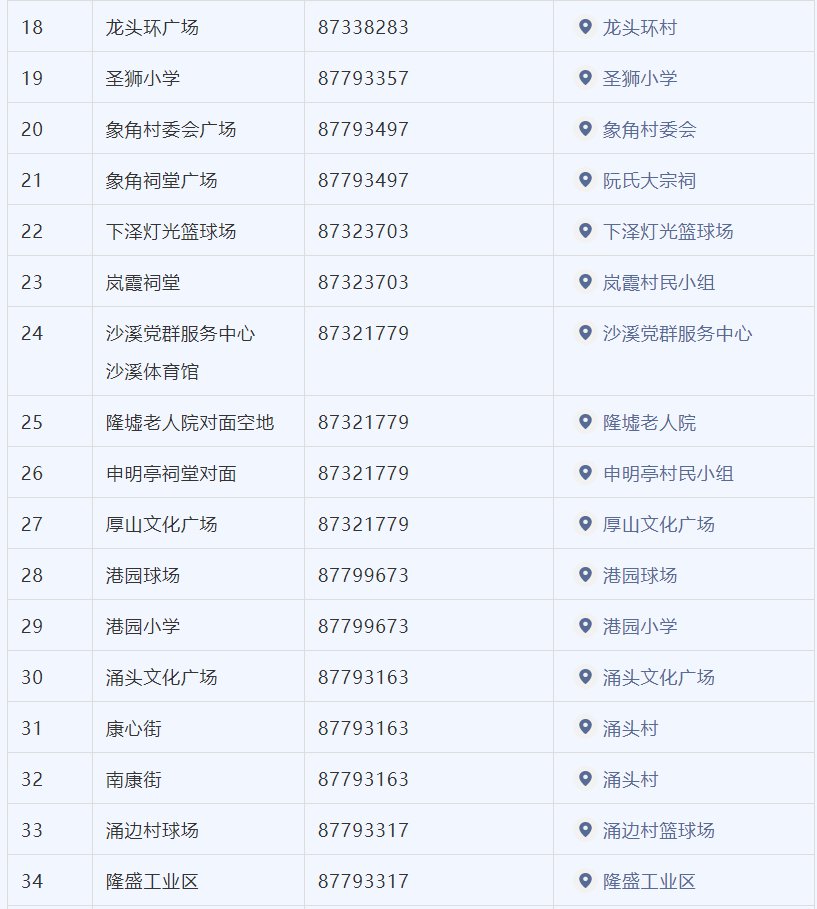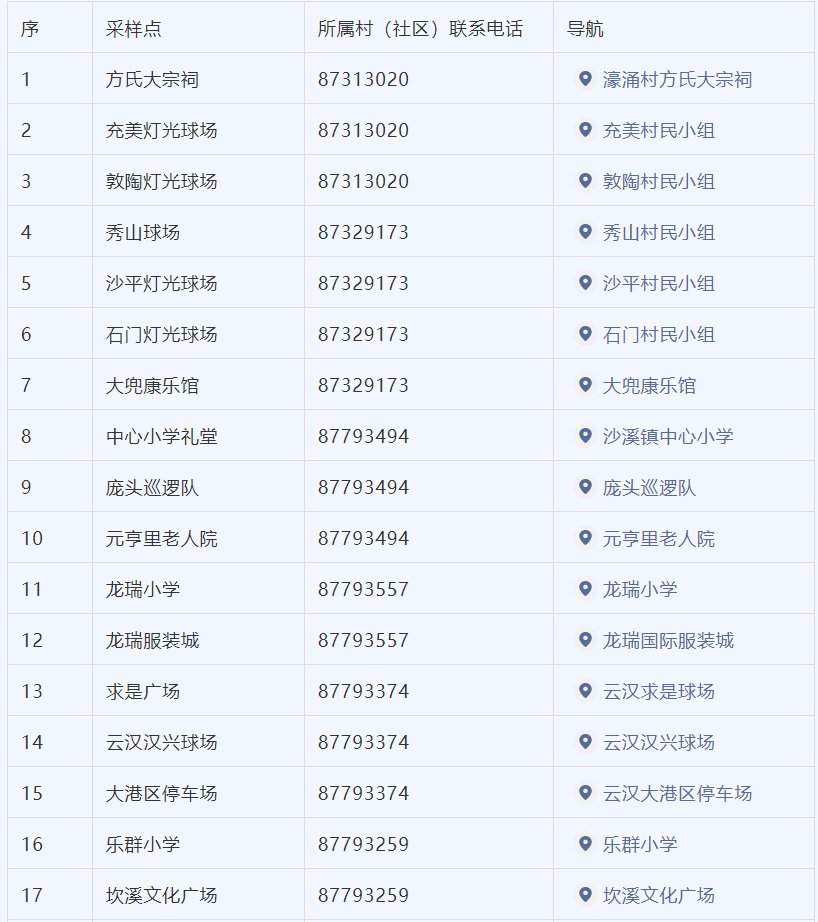 (沙溪党群服务中心、星宝广场检测点时间为10:00-22:00)。