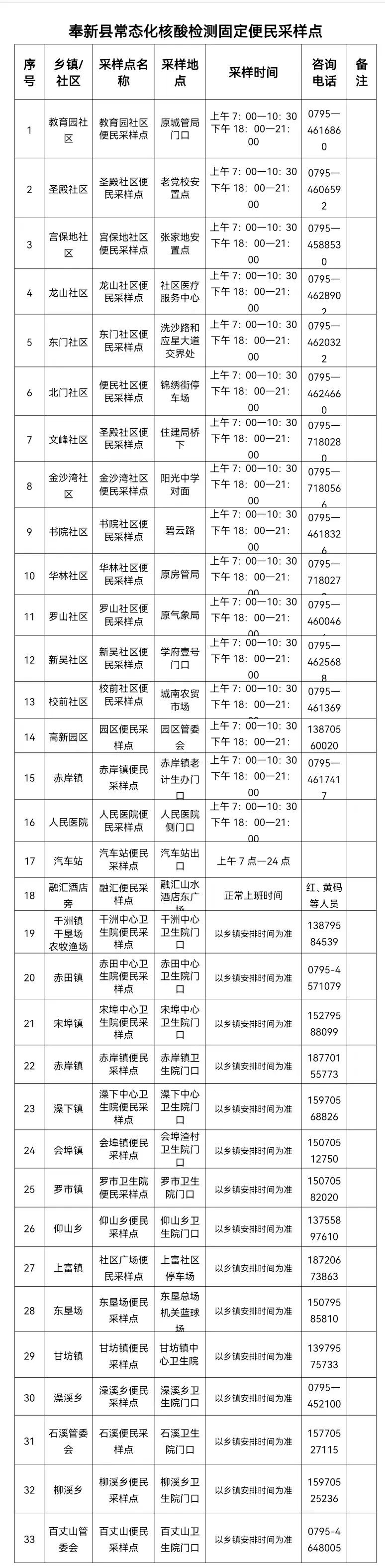 2.奉新县常态化核酸检测固定便民采样点
