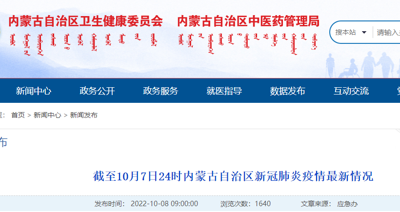截至10月7日24时内蒙古自治区新冠肺炎疫情最新情况