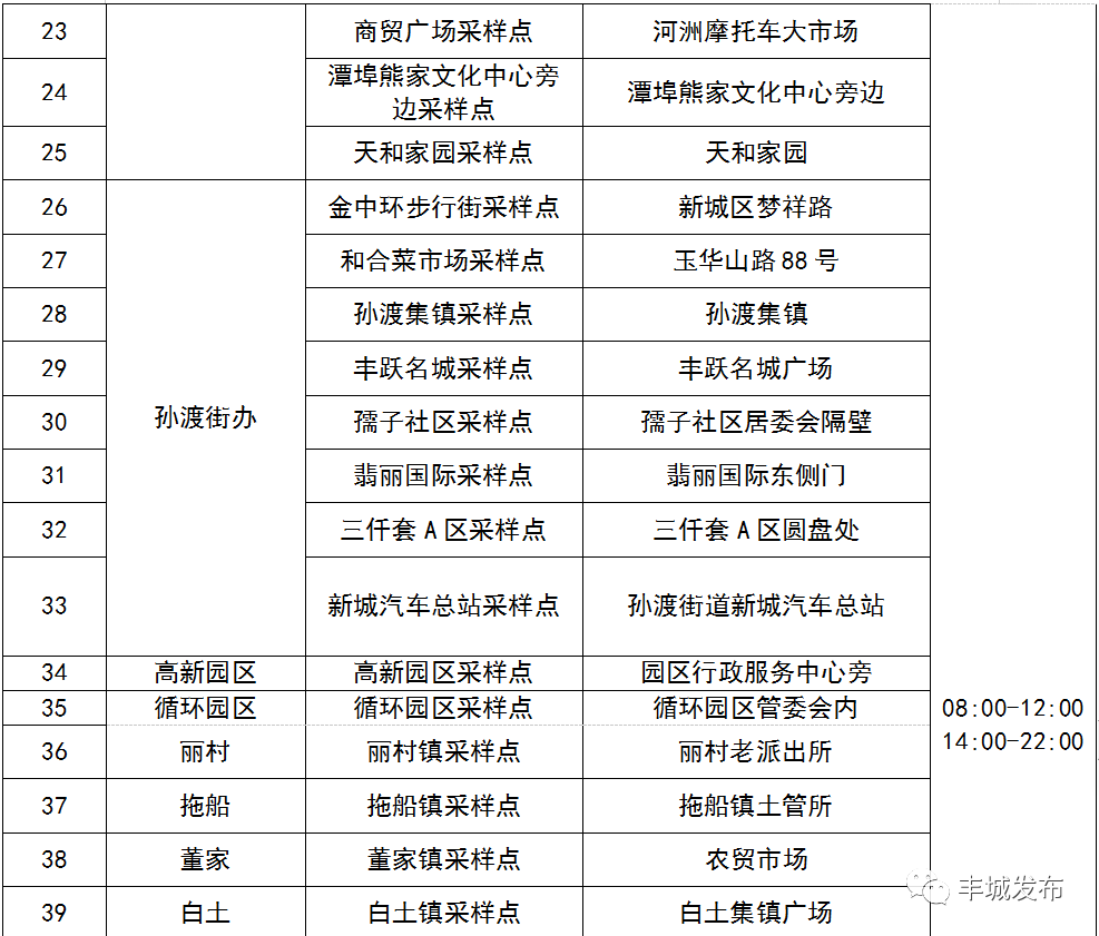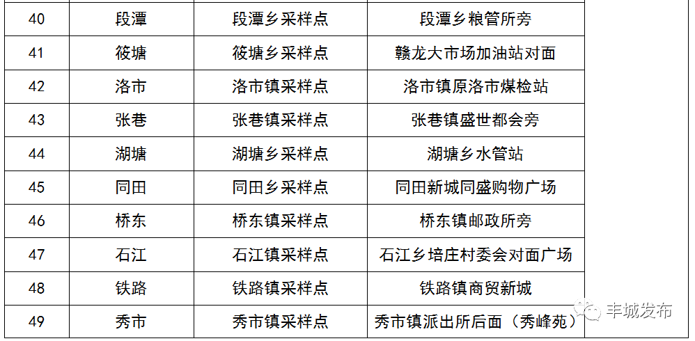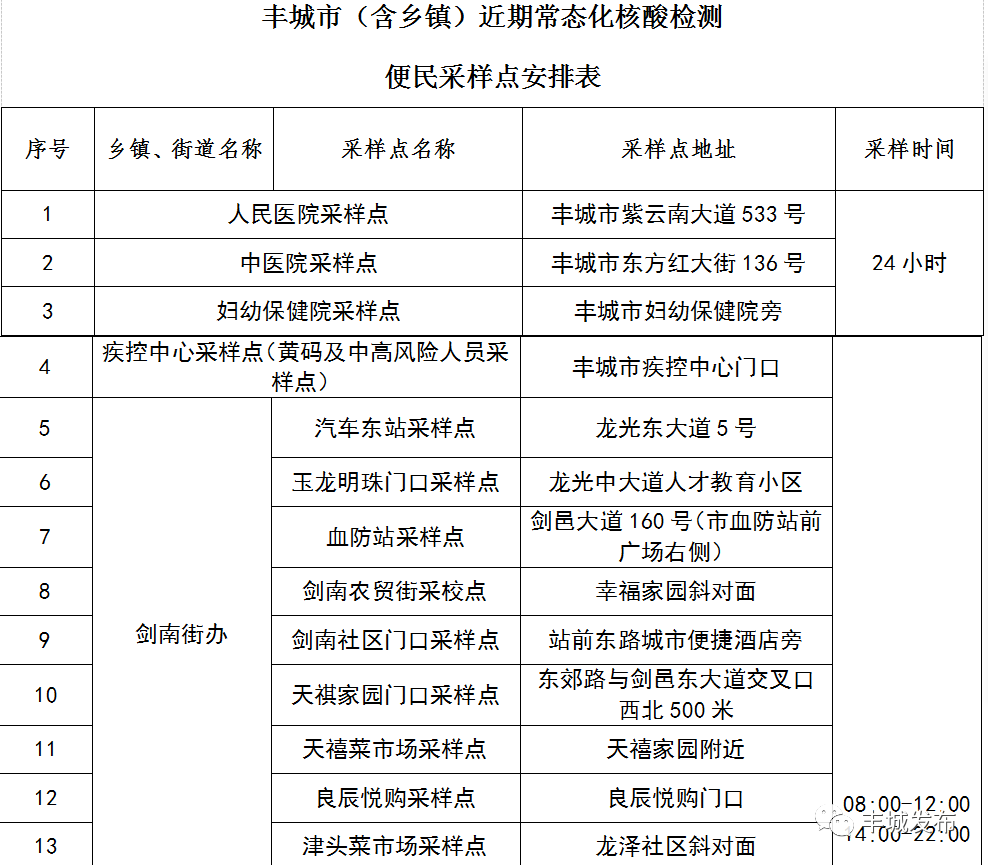 附件:丰城市(含乡镇)近期常态化核酸检测便民采样点安排表