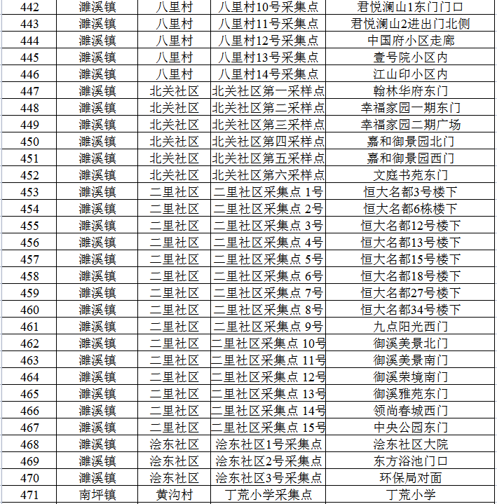全县715个核酸采样点[具体地点以各镇(园区)通知为准]。