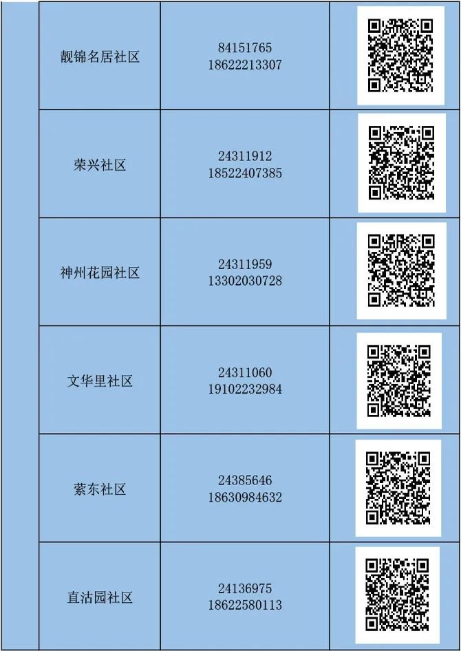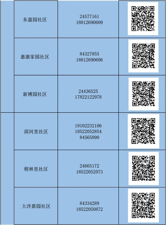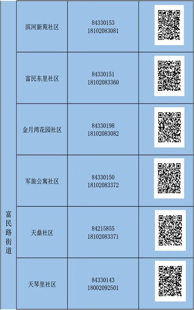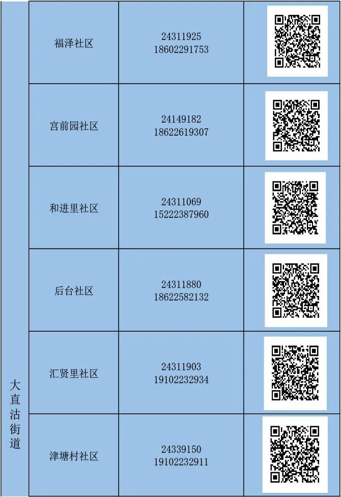 ✔河东区各街道各社区外地来返津人员报备电话及二维码