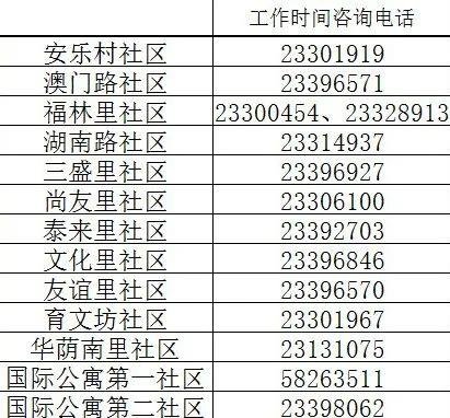 ➤天津市和平区五大道街各社区24小时报备电话