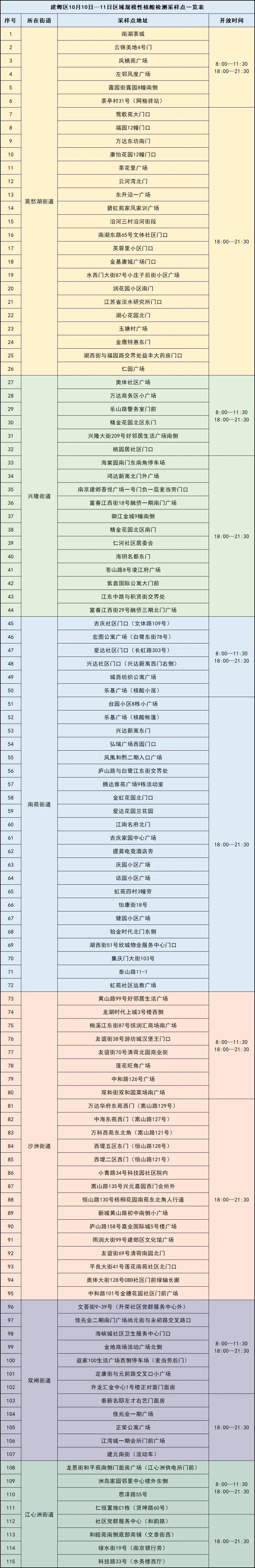 南京建邺区10月10日至11日区域规模性核酸检测安排一览