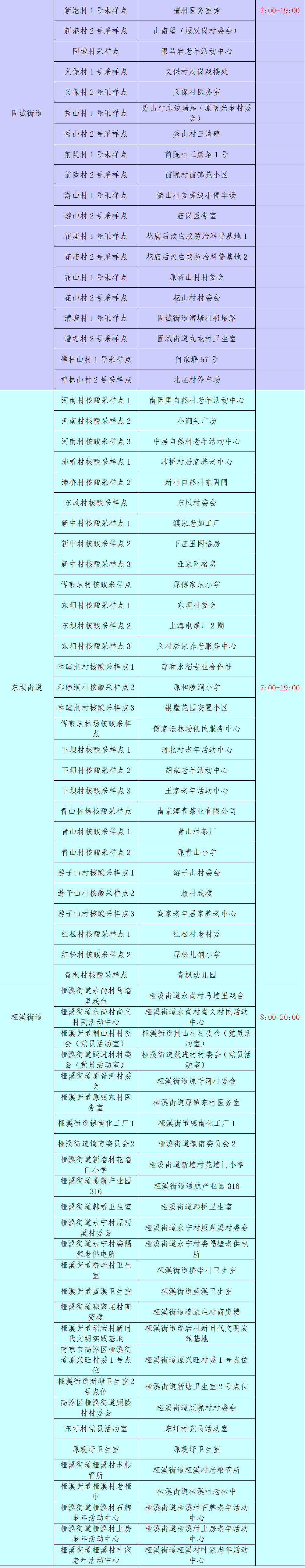 10月10日至11日南京高淳区规模性核酸检测安排+采样点位