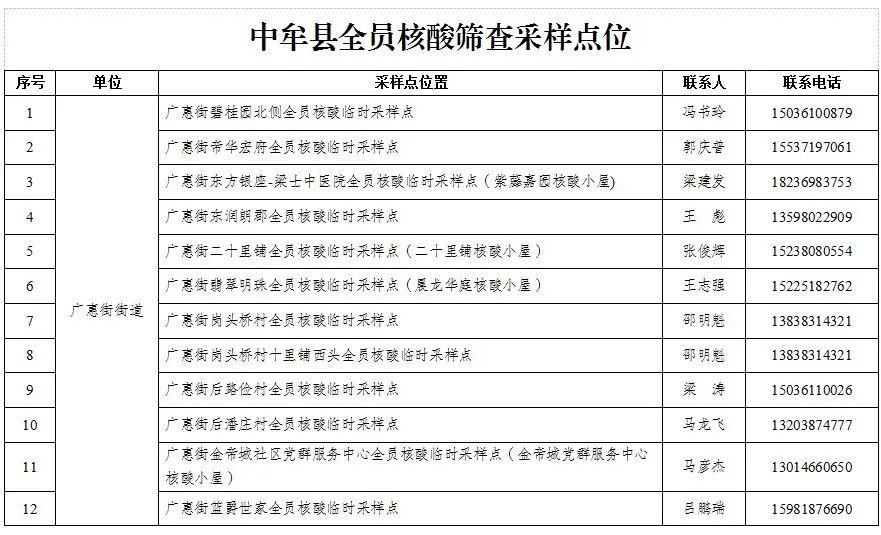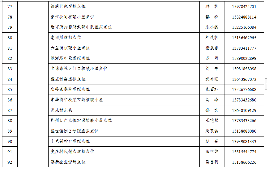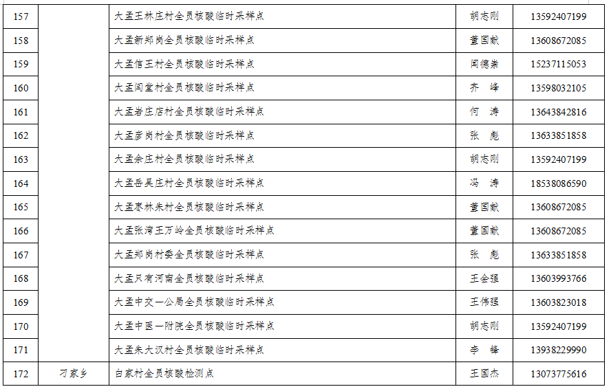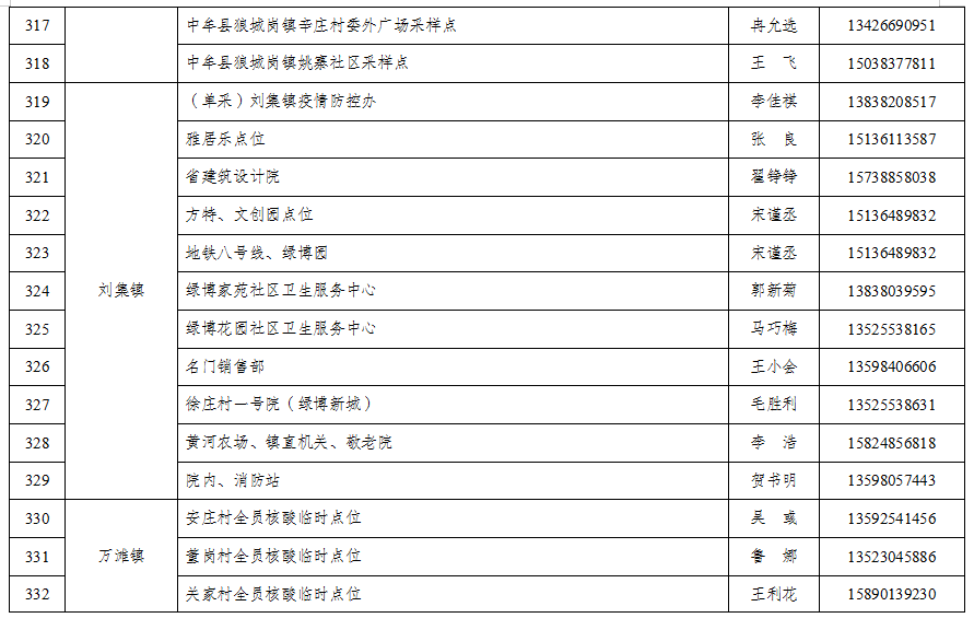 郑州中牟县全员核酸检测点位(具体采样地点)