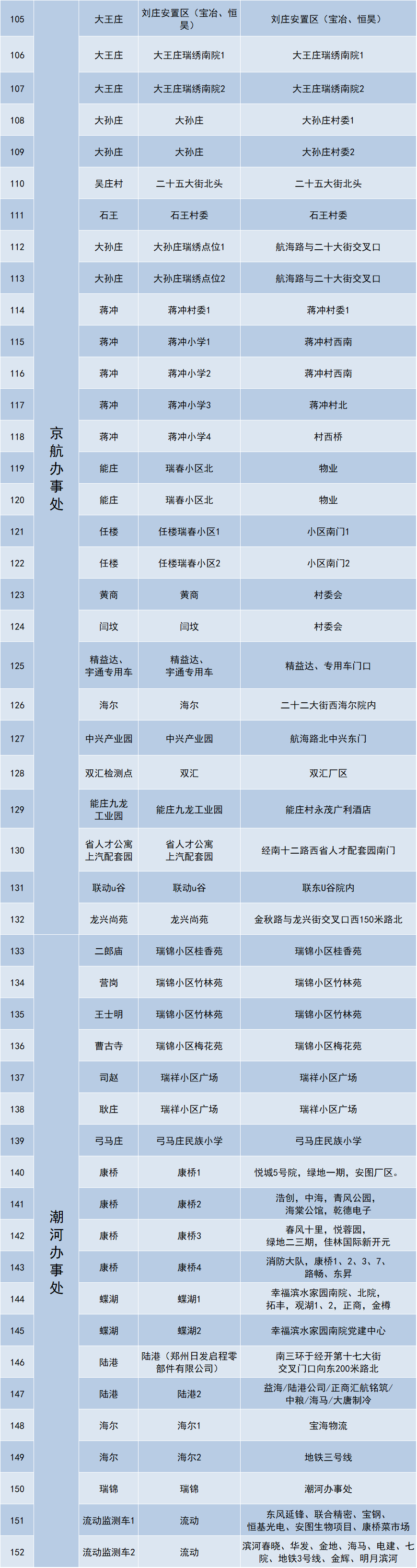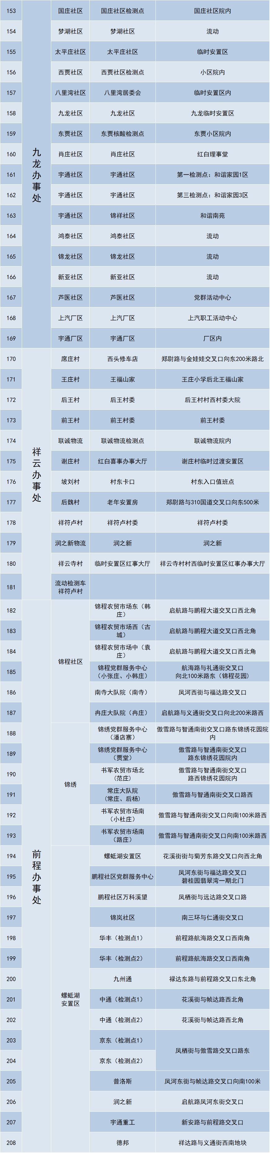 郑州经开区全员核酸采样点一览
