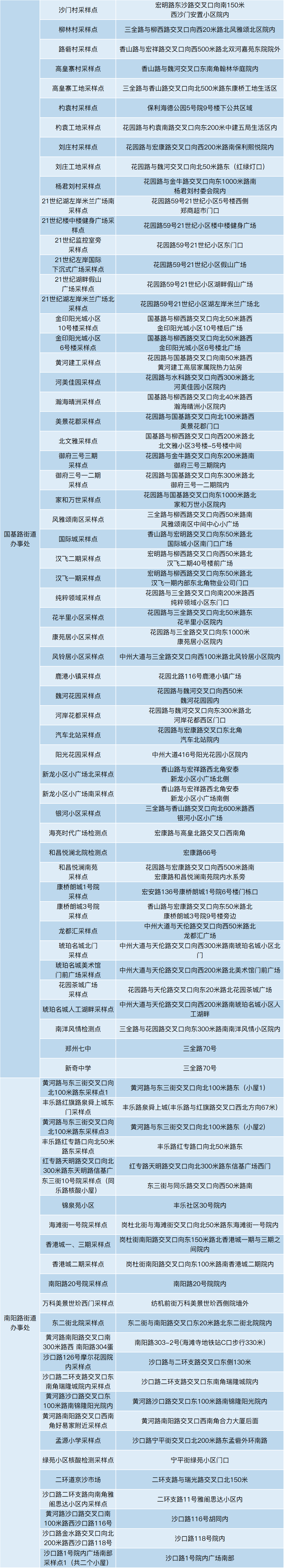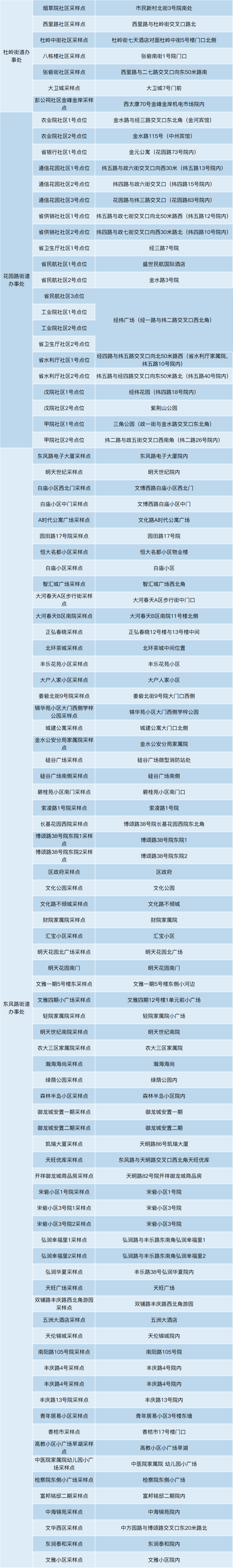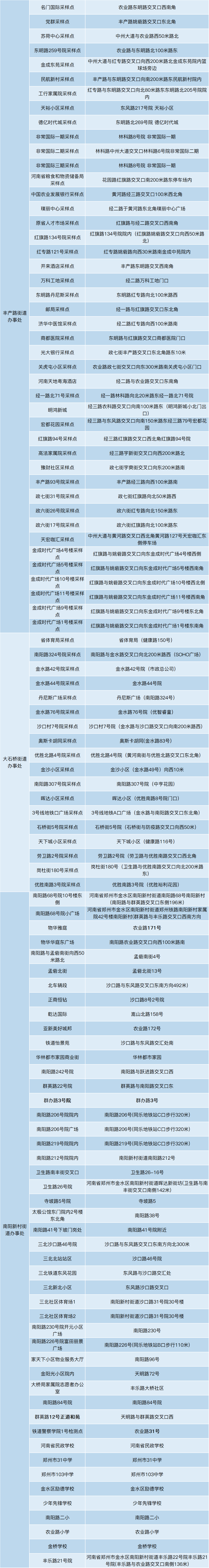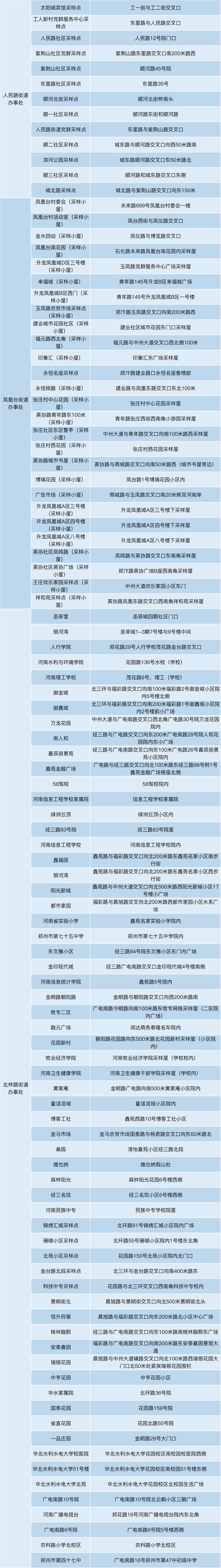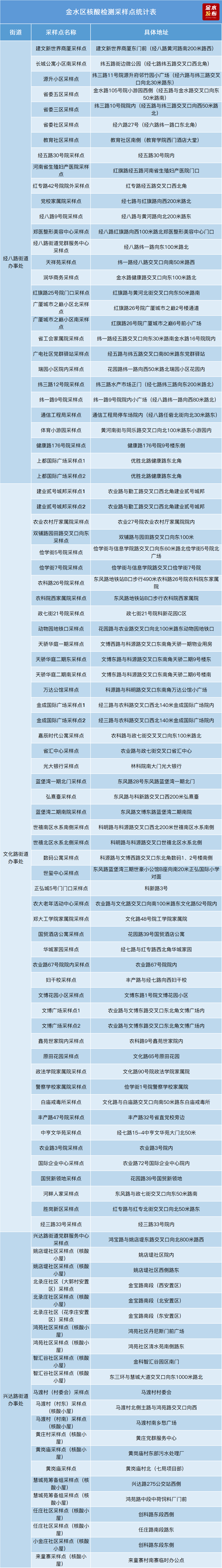 2022金水区全员核酸检测采样地点一览