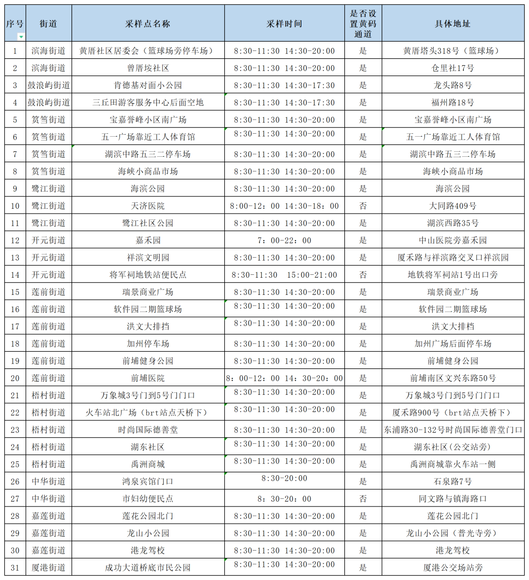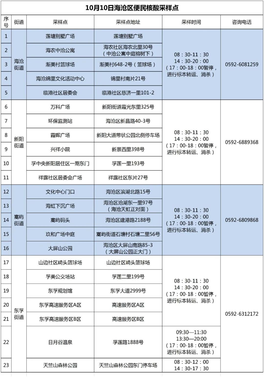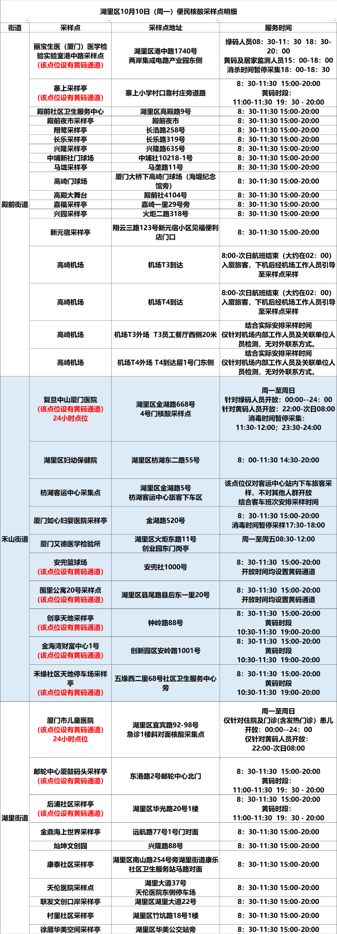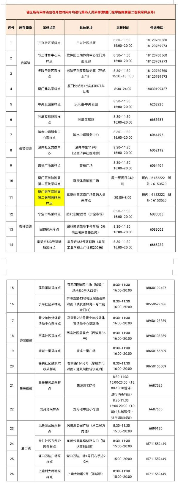 10月10日厦门免费核酸采样点汇总