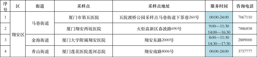 翔安区便民核酸采样点