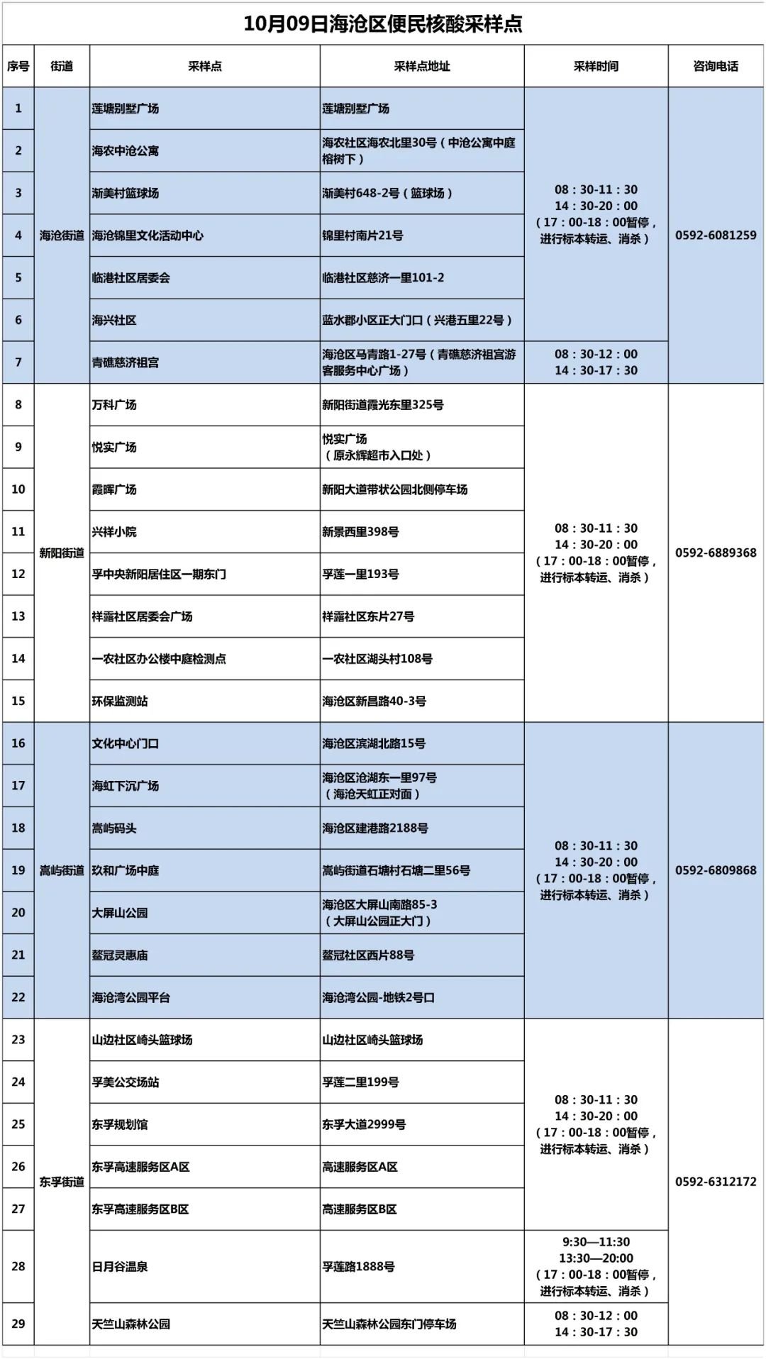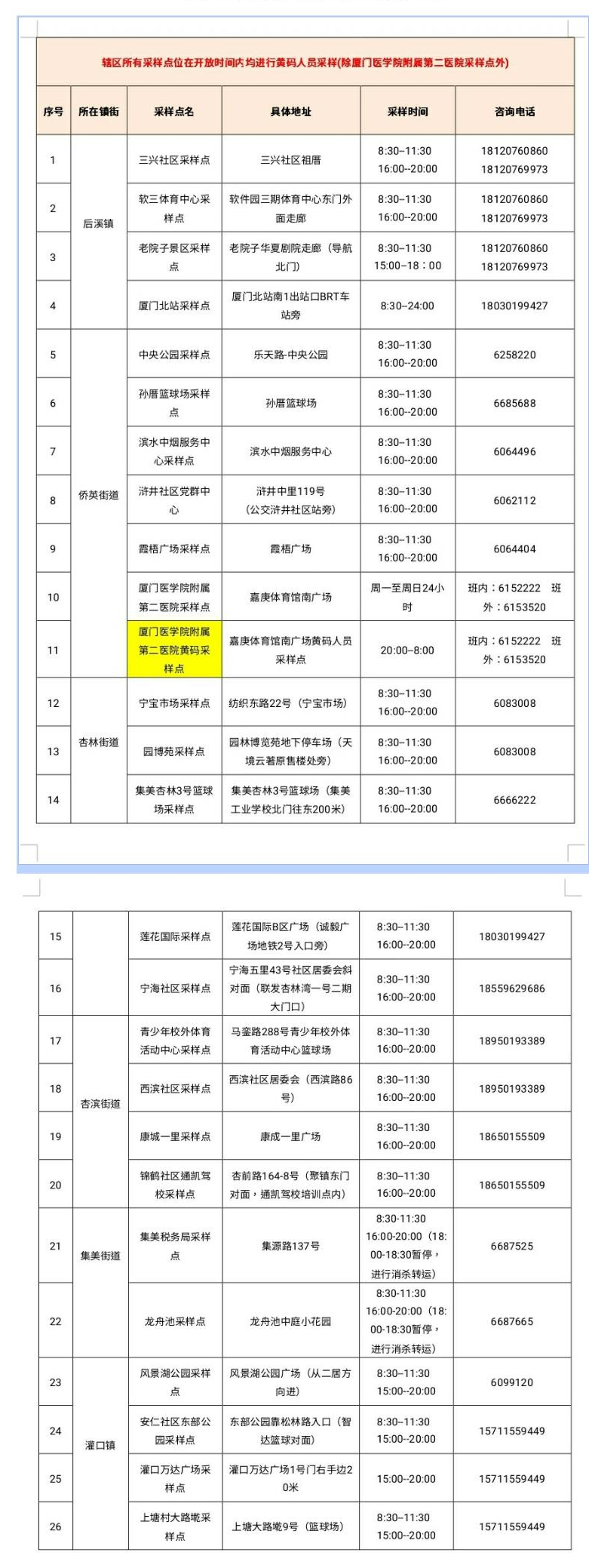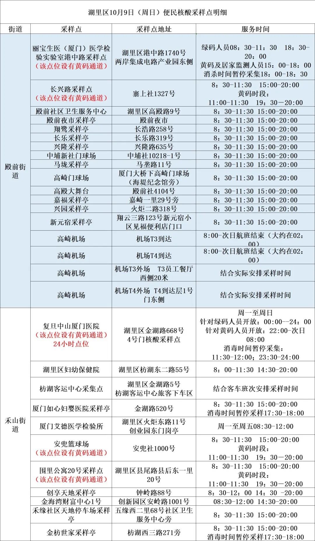 10月9日厦门免费核酸采样点汇总